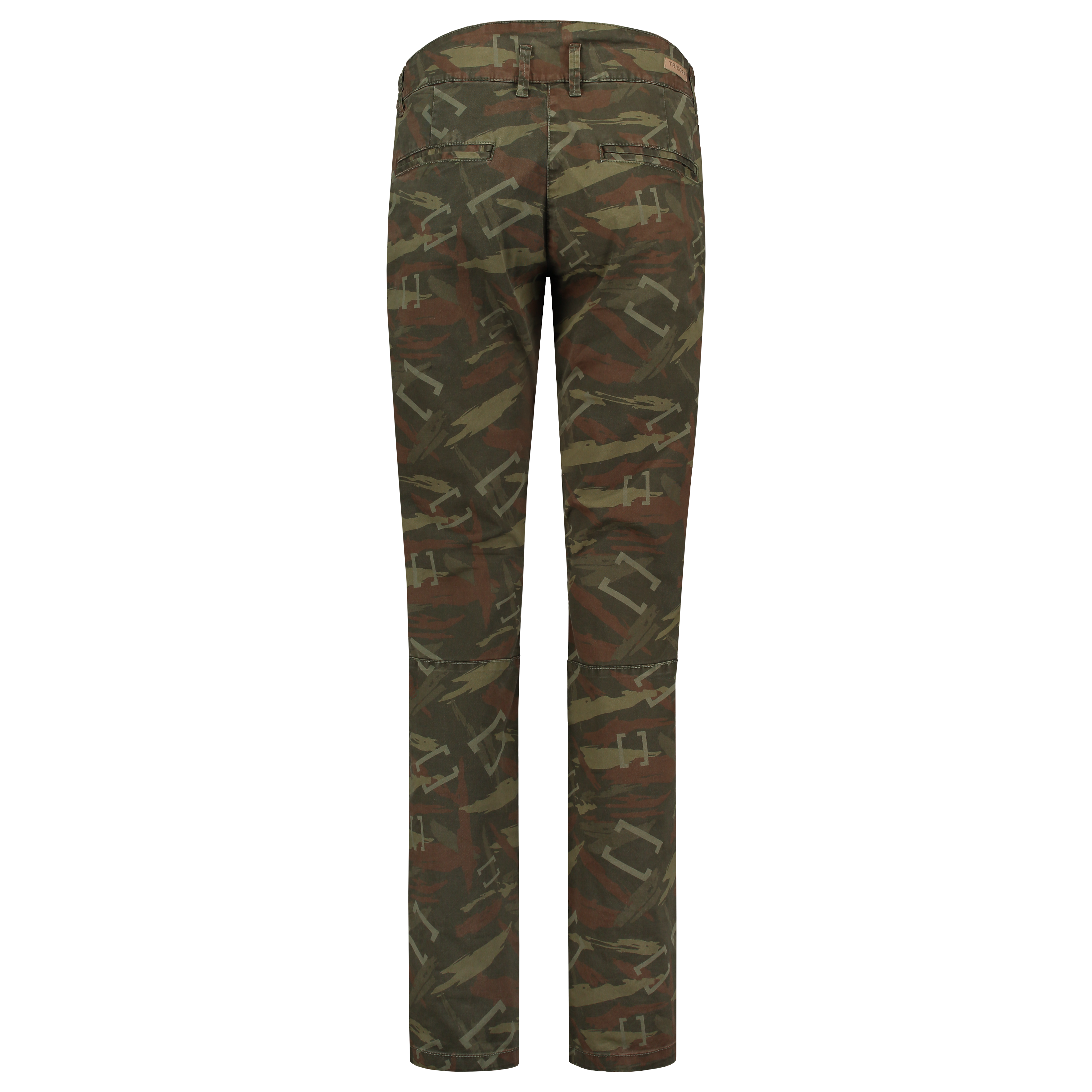 Deze kwalitatieve chino van katoen is voorzien van een moderne legerprint. De speciale uitvoering met 3% elastaan zorgt voor een uitermate comfortabele pasvorm. Dankzij het verhoogde achterpand past de chino perfect om de taille en wordt de onderrug ook bij het bukken bedekt. De print zorgt voor een moderne look die perfect combineerbaar is met de bovenkleding uit de Premium lijn.