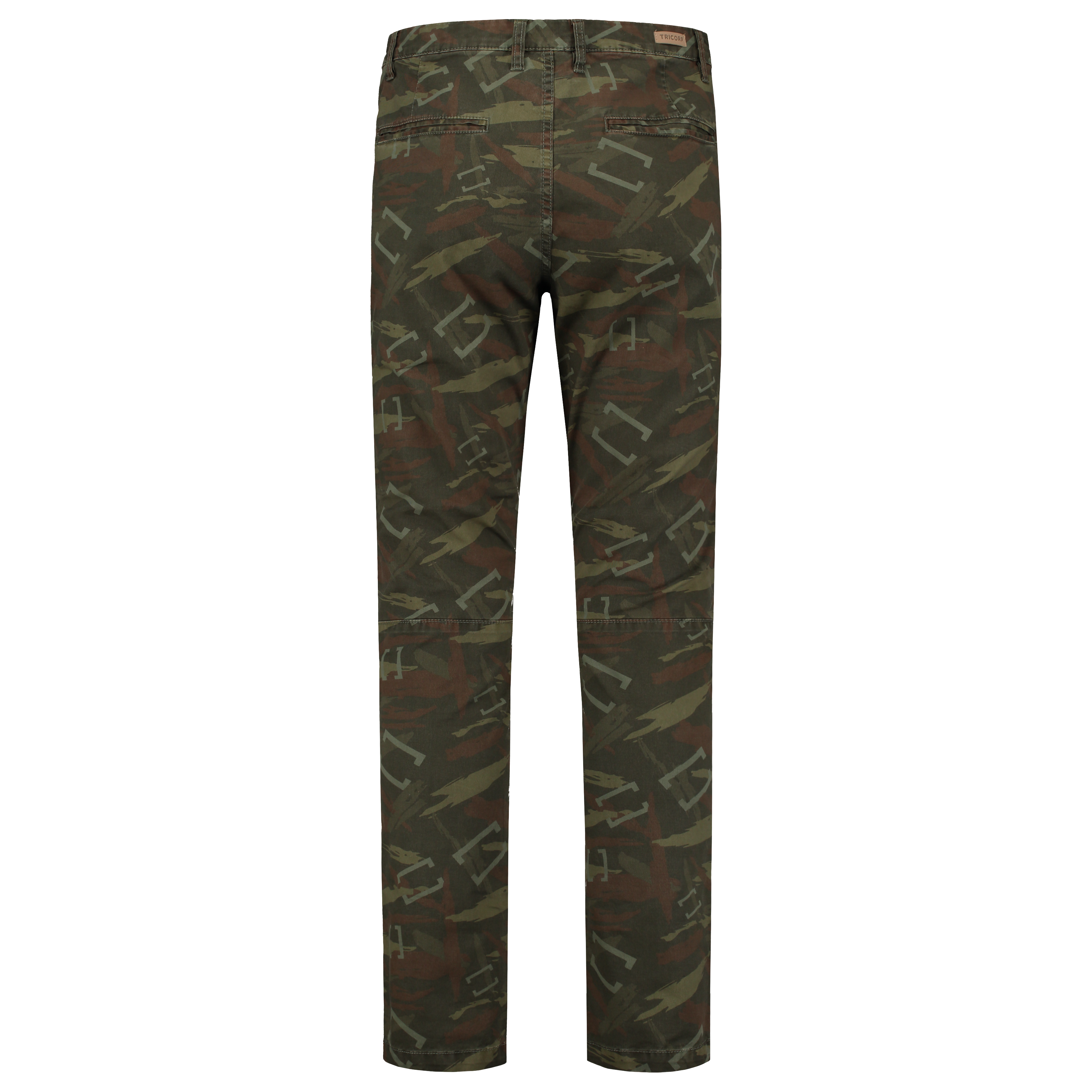 Deze kwalitatieve chino van katoen is voorzien van een moderne legerprint. De speciale uitvoering met 3% elastaan zorgt voor een uitermate comfortabele pasvorm. De print zorgt voor een moderne look die perfect combineerbaar is met de bovenkleding uit de Premium lijn.