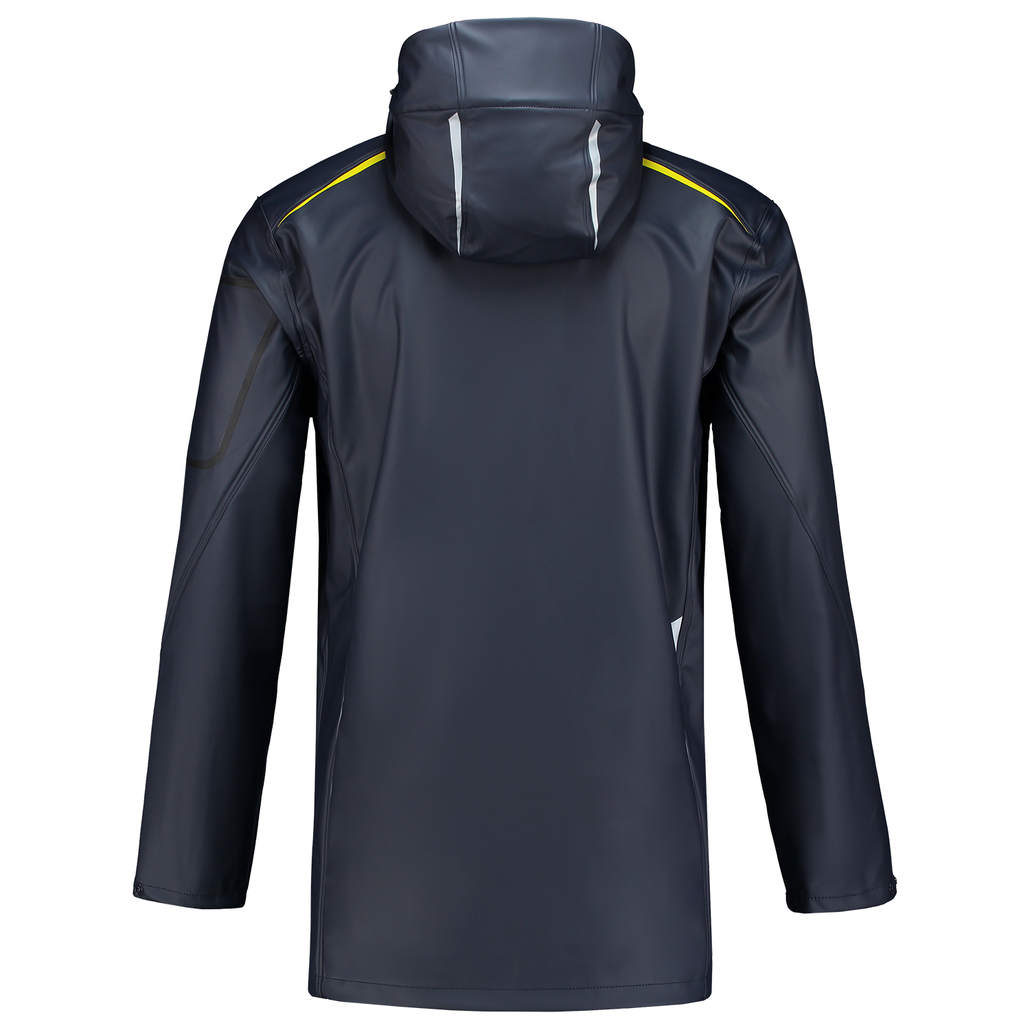De regenjas luxe heeft een luxe uitstraling en is vervaardigd uit kwalitatief hoogwaardig materiaal. De jas is gemaakt uit 100% Polyester, Pu coated en heeft een doekgewicht van 230 gr/m2. Dit product is EN 343:2003 + A1:2007 klasse 3:1 gecertificeerd. Aan de voorzijde is de jas voorzien van een aantal gekleurde details. Daarnaast heeft dit product voldoende opbergruimte door de twee steekzakken en de borstzak. Het ademend vermogen blijft optimaal door de ventilatierits met een mesh afwerking onder de armen. De capuchon is door elastische stelkoorden naar wens aan te passen en het klittenband aan de kraag en de capuchon zorgt ervoor dat deze geheel om het hoofd aan te sluiten is. Liever geen capuchon? Dan is deze gemakkelijk door middel van een rits los te halen. De jas wordt gesloten door een rits en drukknoppen. De uiteinden van de mouwen zijn door drukknoppen naar wens te verstellen.