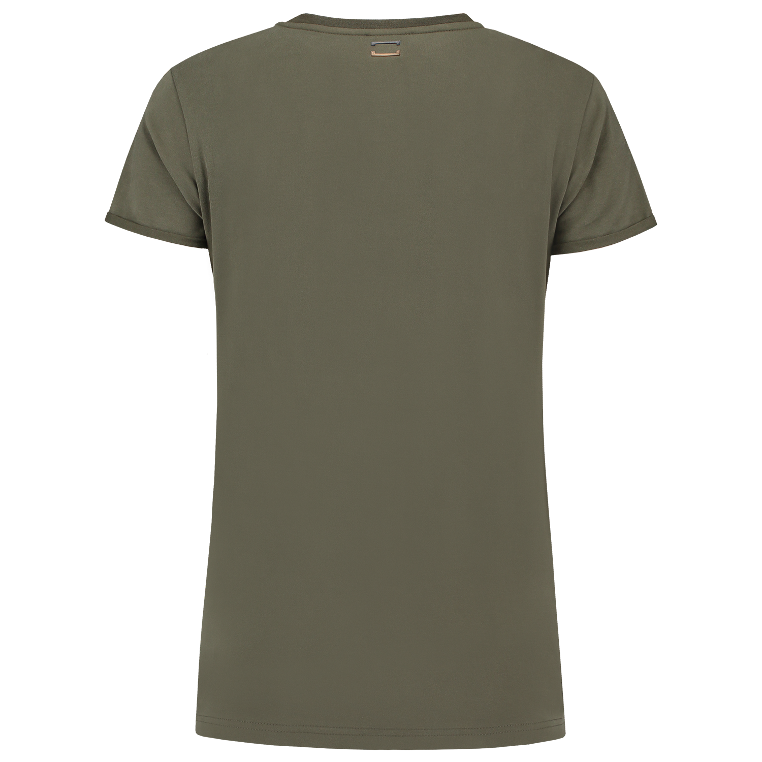 Premium T-shirt met Tricorp logo op de borst. De uitgesneden hals en fitted pasvorm bieden een modieuze en vrouwelijk uitstraling aan je werkoutfit. Dankzij de vervaardiging uit gekamd katoen en elastaan blijft de pasvorm van dit shirt altijd mooi, zelfs bij zware inspanningen.