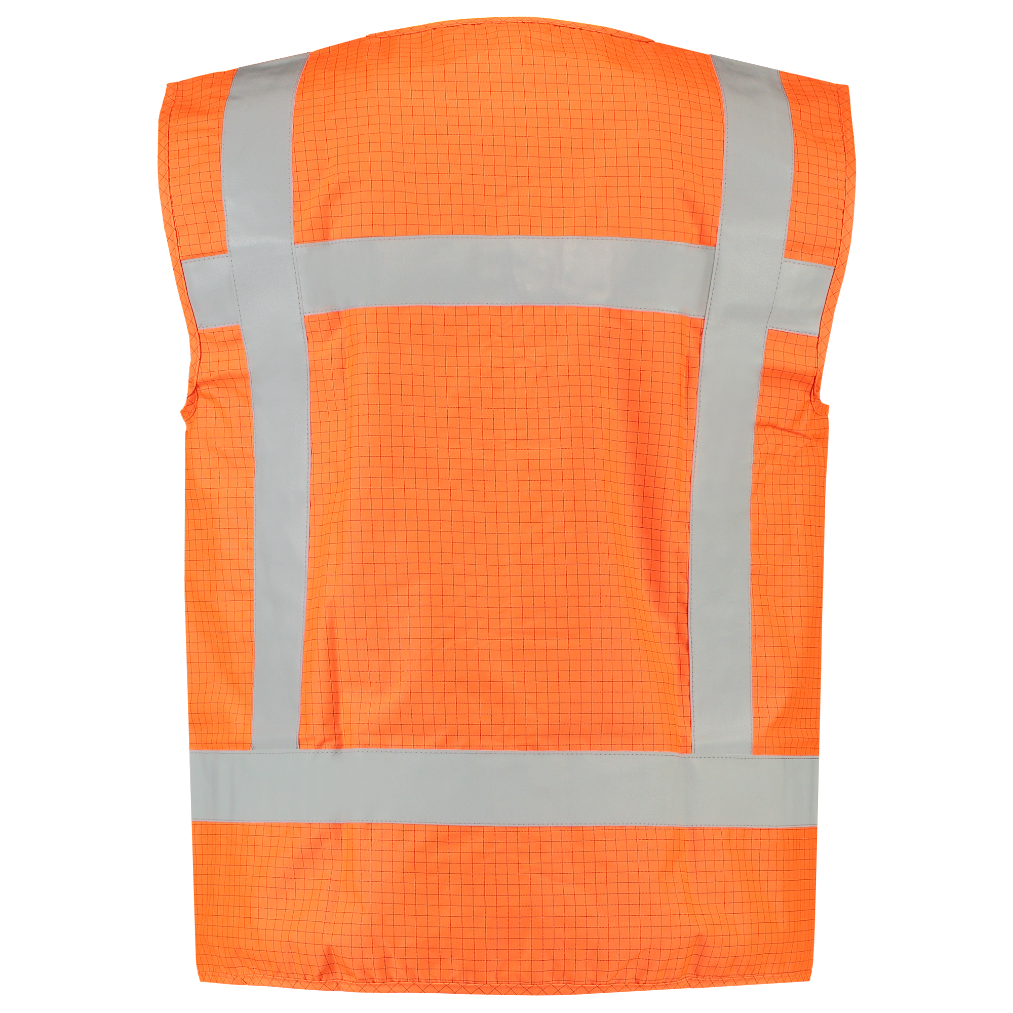 Dit veiligheidsvest biedt een zeer veelzijdige oplossing voor personen die met uiteenlopende veiligheidsrisico’s te maken kunnen krijgen. Het vest voldoet aan de EN ISO 20471:2013 / Klasse 2 norm voor hoge zichtbaarheid. De fluorescerende stof waarvan dit vest is gemaakt voldoet aan de norm EN ISO 14116: 2008 (index 1/5H/40) Beperkte vlamverspreiding en EN 1149-3: 2004 Antistatisch. Bovendien is dit veiligheidsvest uitgevoerd conform de richtlijnen van Rijkswaterstaat waarbij de striping gestikt is.
